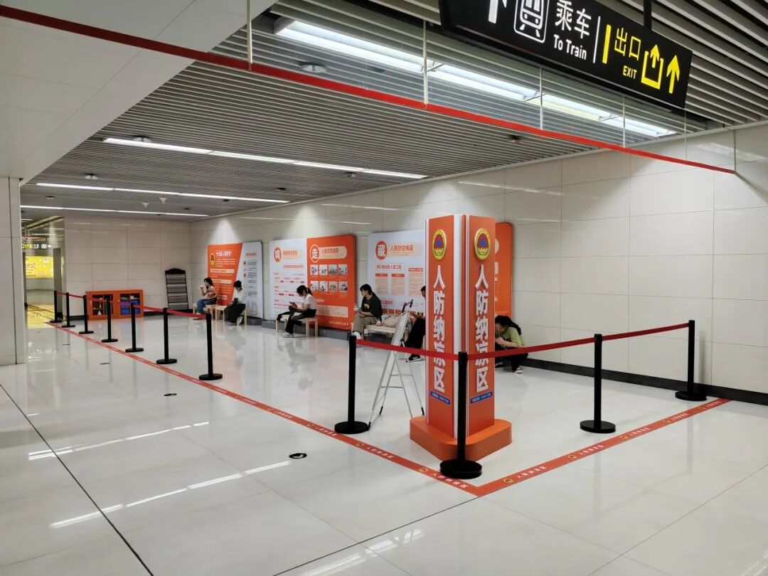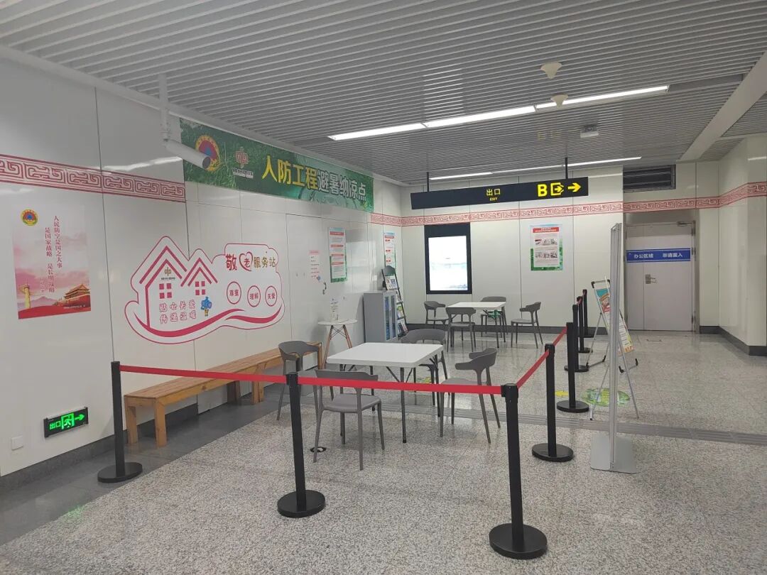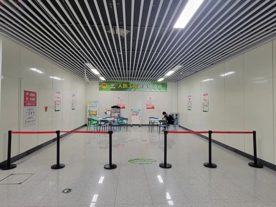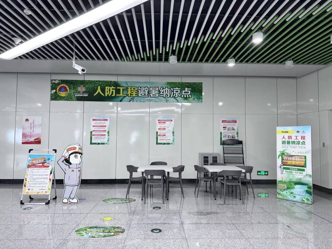 鄭州地鐵配合鄭州市人防辦對納涼點場地進行了精心布置,配備了休息桌椅、防暑藥品、報刊雜志、人防宣傳資料等物品,設置了人防知識宣傳展區(qū)。鄭州地鐵納涼點不僅環(huán)境整潔、空氣新鮮、空調(diào)溫度涼爽,還為市民提供了熱水、針線盒、雨衣、雨傘、充電寶等定制服務。